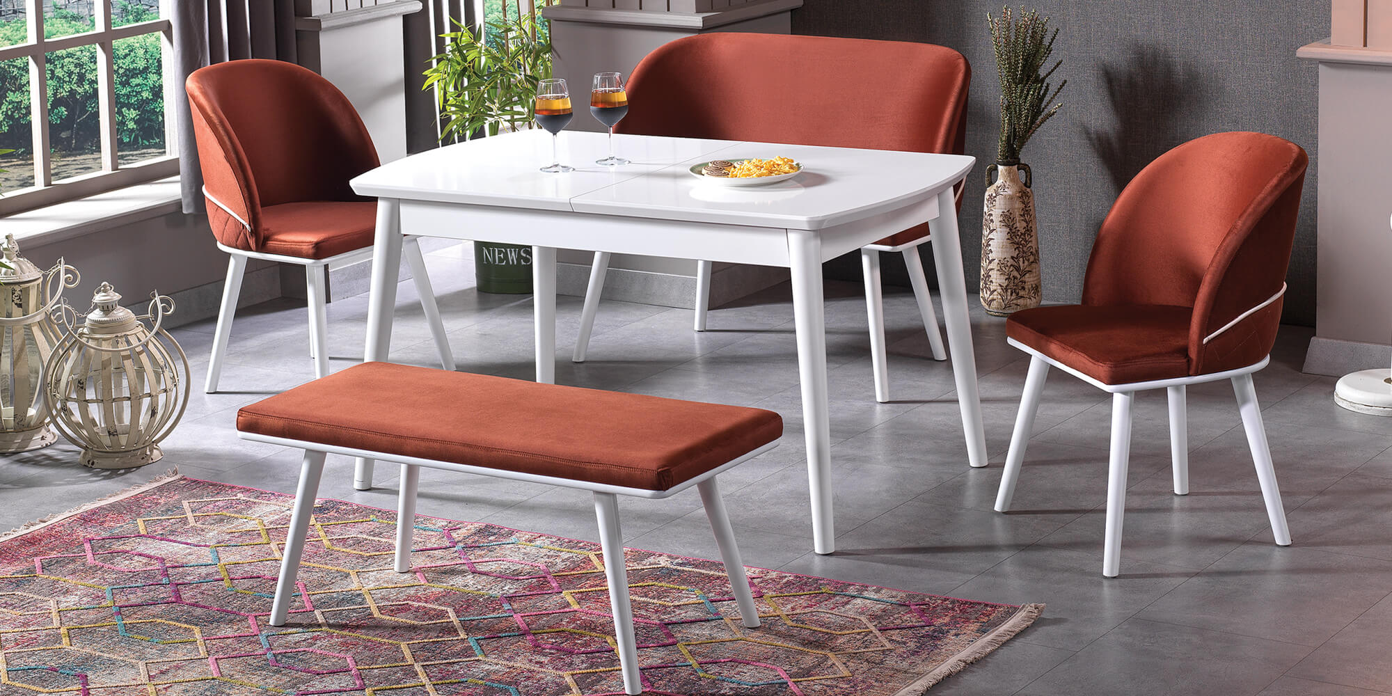 Loca (Beyaz Lake Köşe Banklı Masa)