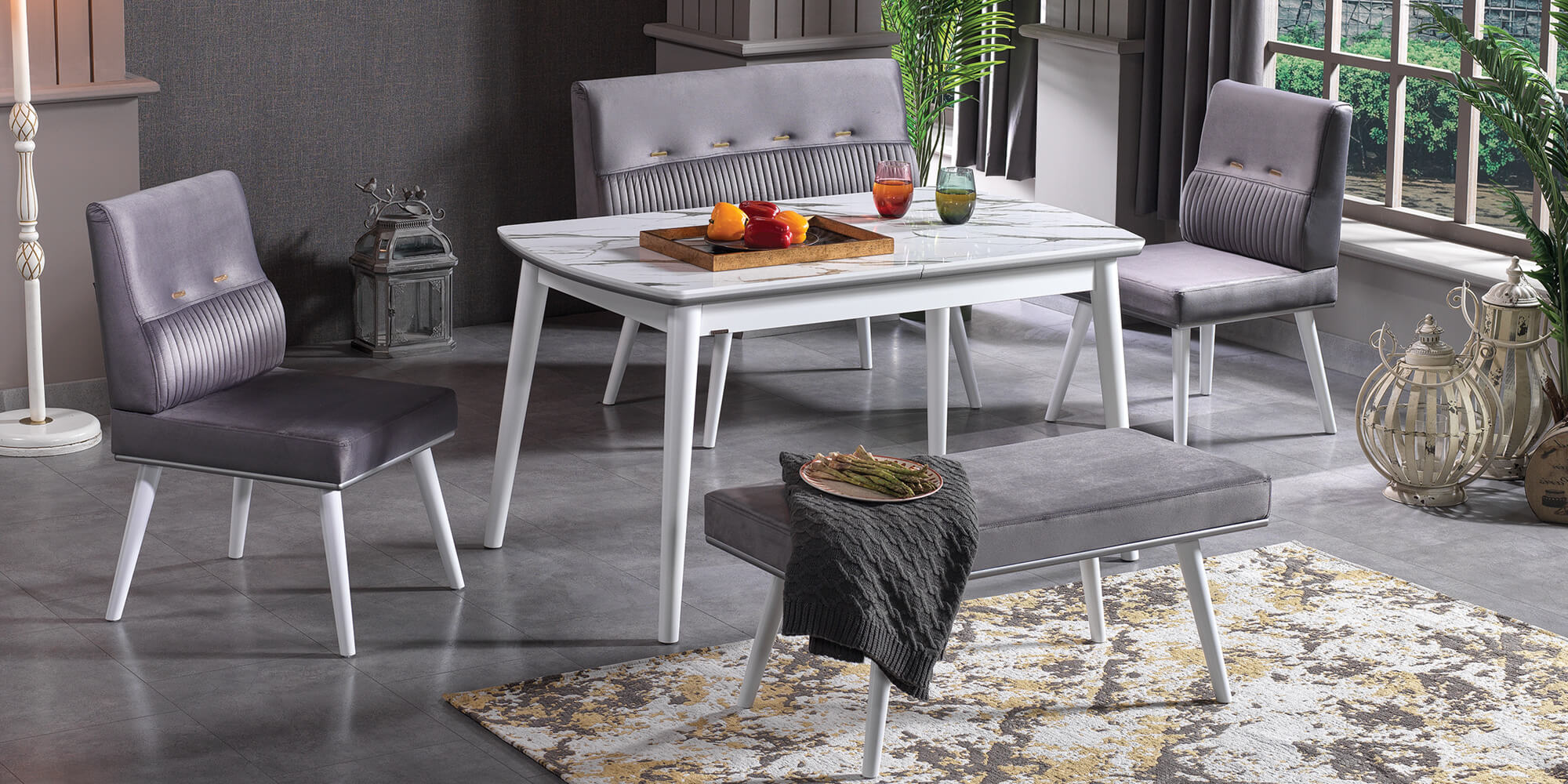 Loca (Beyaz Lake Köşe Banklı Masa)