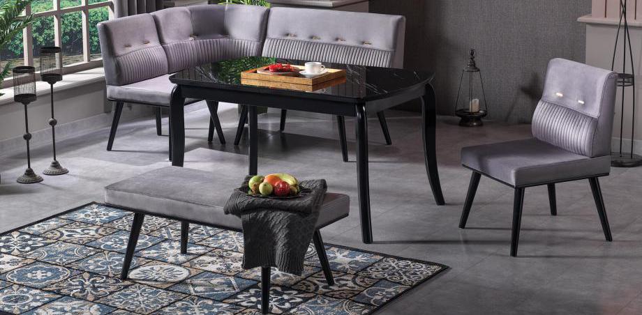 Loca (Siyah Mermer Köşe Banklı Masa)
