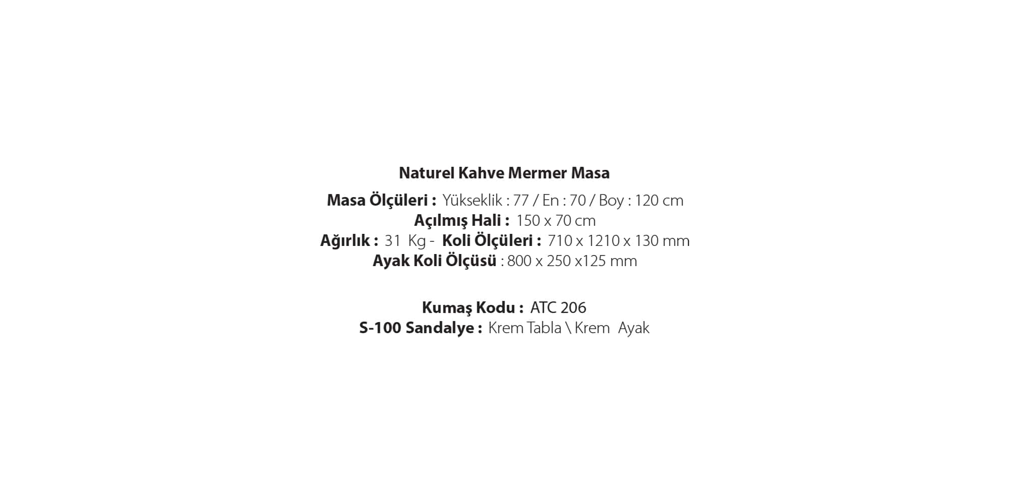 Naturel(Kahve Mermer Masa)